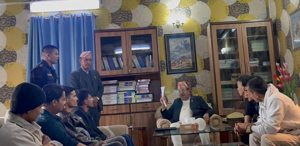 बैठक नेता पूर्णबहादुर खड्काले सञ्चालन गरेका छन् । उनले शेखर कोइराला र शशांक कोइरालालाई दायाँबायाँ राखेर बैठक सञ्चालन गरेका हुन् । शेखर पुगेसँगै खड्काले सबै नेतालाई आ–आफ्नो ठाउँ मा बसिदिन आग्रह गरेर बैठक अघि बढाए ।