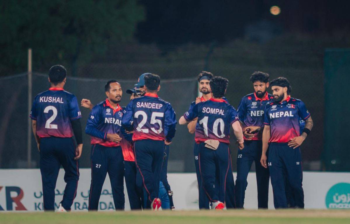 कुशल भुर्तेल २८, कप्तान रोहित पौडेल २०, कुशल मल्ल १०, दीपेन्द्रसिंह ऐरी १ र गुल्सन झा १४ रन बनाएर आउट भए । सन्दीप जोरा ४ र सोमपाल कामी ६ रनमा अविजित रहे ।