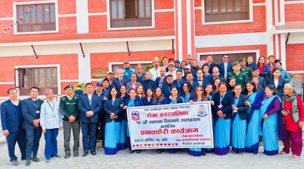 काठमाडौं । काठमाडौंको टोखा नगरपालिकाले १२ औँ स्थापना दिवस मनाएको छ । नगरपालिकाको सभा हलमा मंगलबार विभिन्न कार्यक्रम गरी स्थापना दिवस मनाइएको हो । ११ वर्ष पार गरी १२ औँ वर्षमा प्रवेश गरेको अवसरमा नगरपालिकाका नगर प्रमुख प्रकाश अधिकारीले आफ्नो दुई कार्यकालमा साथ दिने सबैप्रति आभार व्यक्त गरे ।